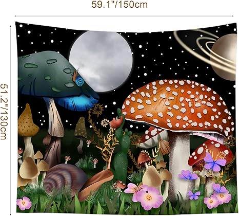 Mushroom Stars and Moon Tapestry