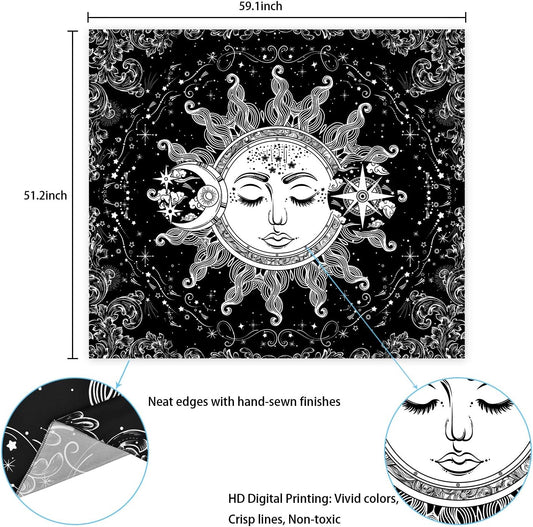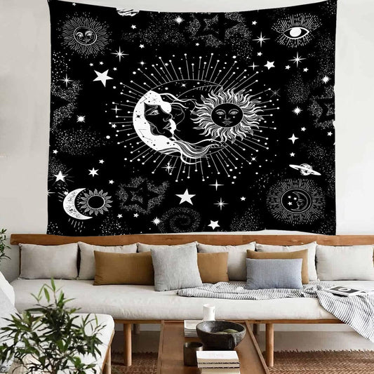 Sun and Moon Black and White Tapestry