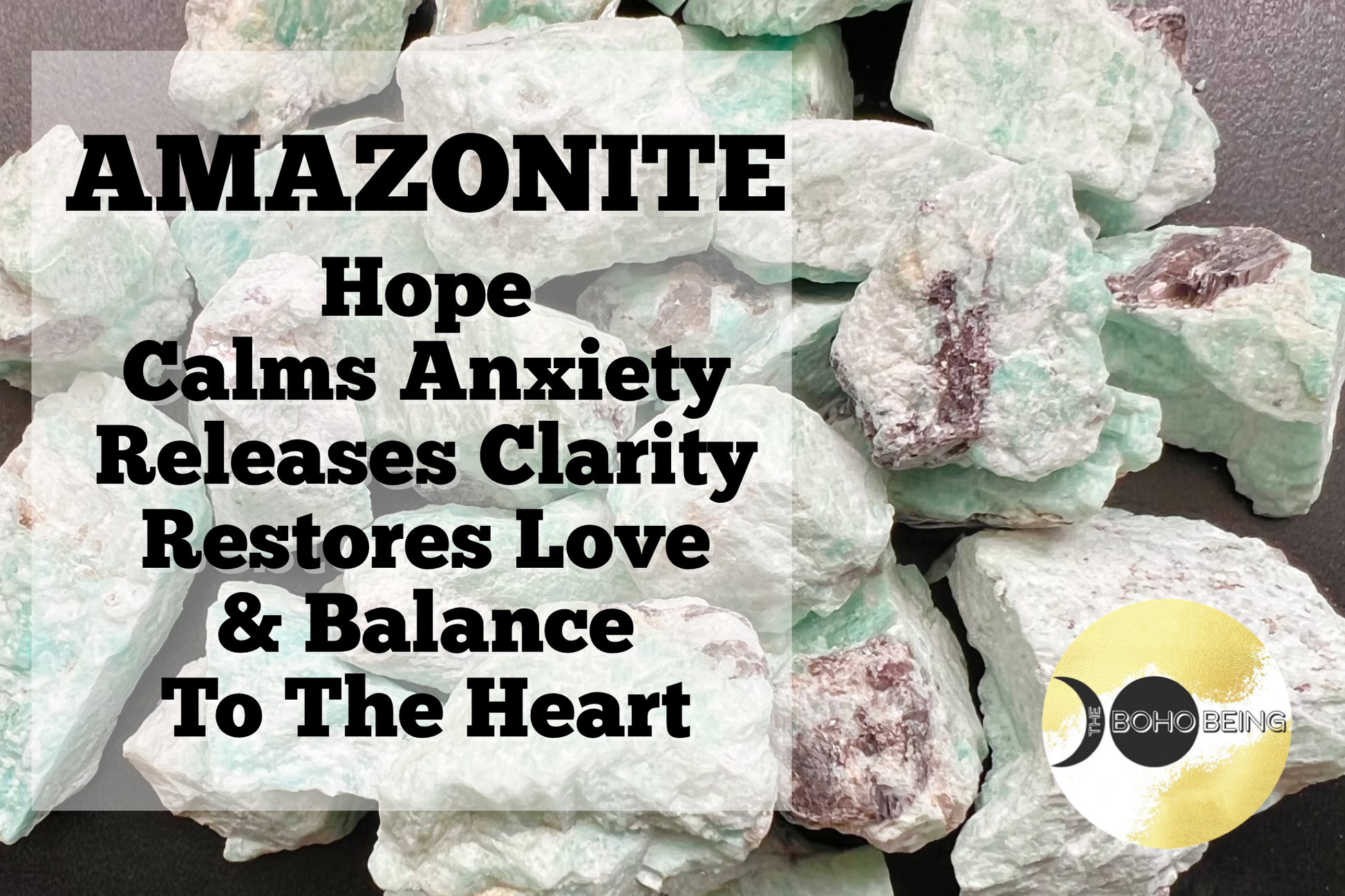 Amazonite, also known as the Hope Stone, is a blue gemstone. The meaning of Amazonite is to calm anxiety and release clarity.