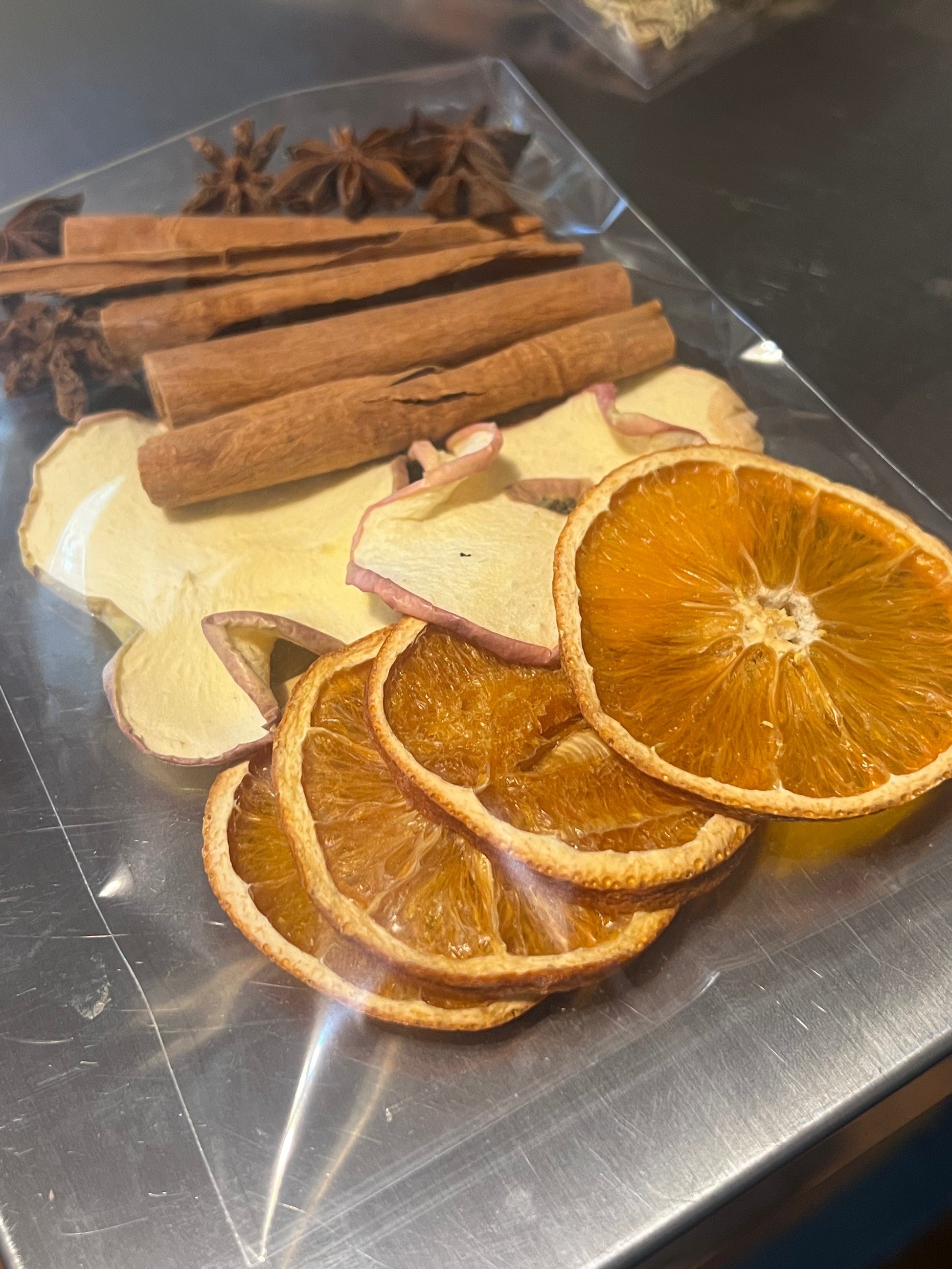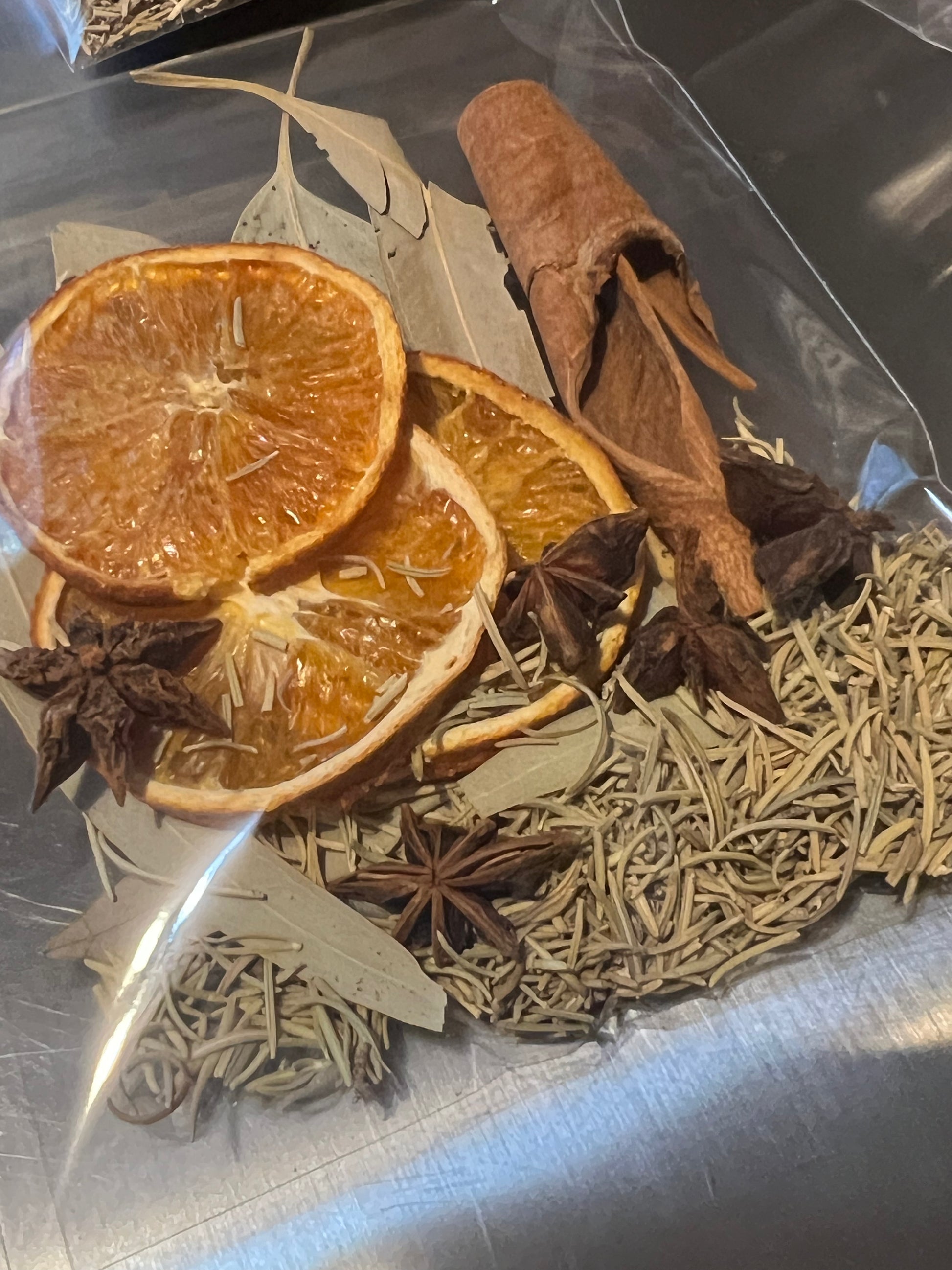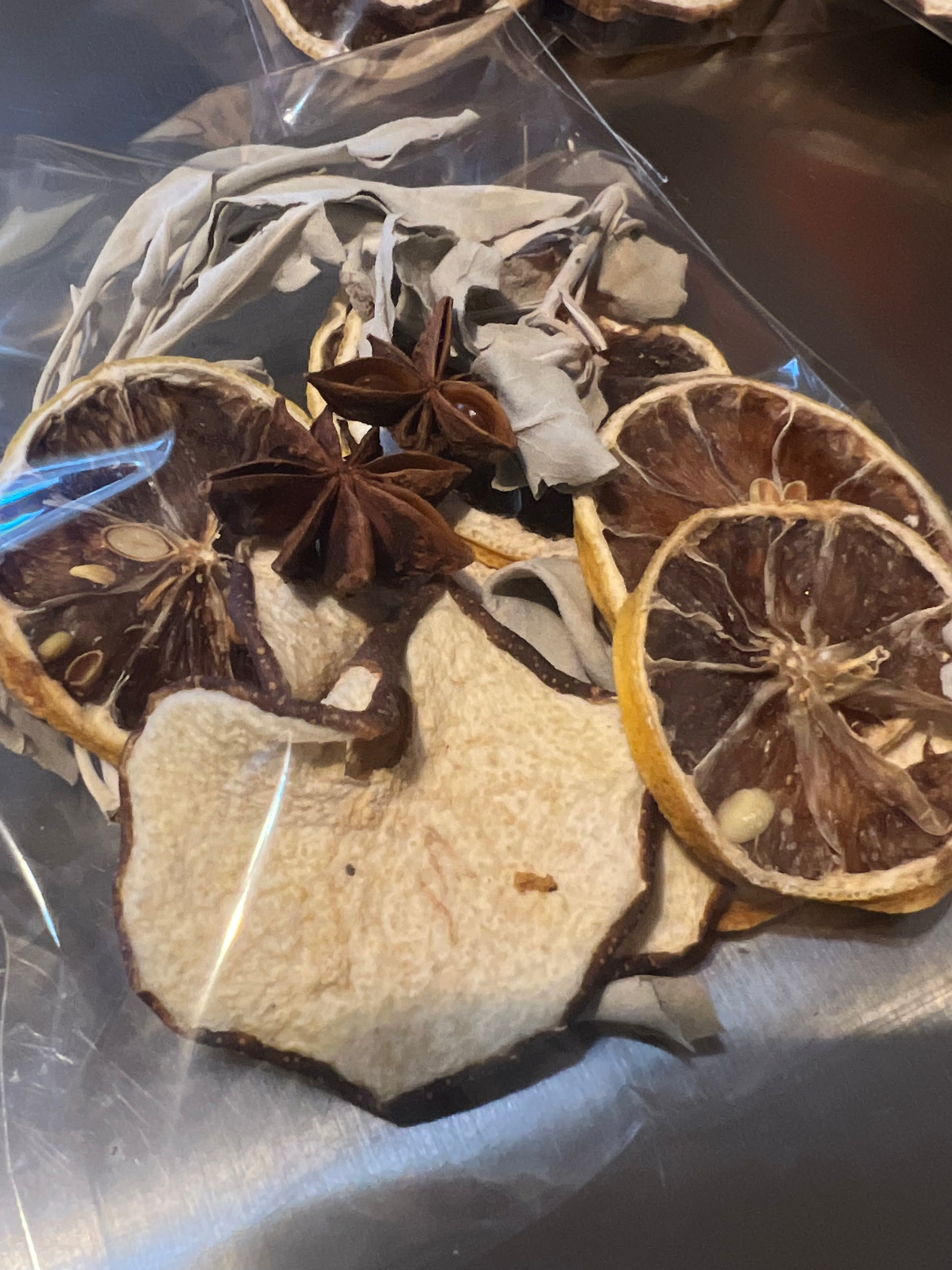 A hand-crafted blend of dried fruit and herbs crafted to immerse the home in proprietary scents.