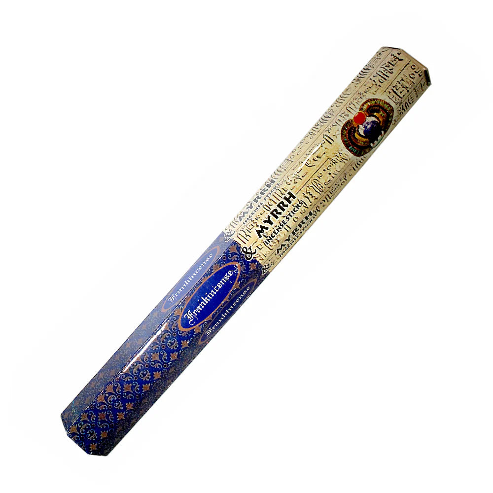 Hand crafted Frankincense & Myrrh incense pack includes 20 sticks that will diffuse a warm and earthly fragrance. Traditional usage of this incense is believed to be healing and relaxing