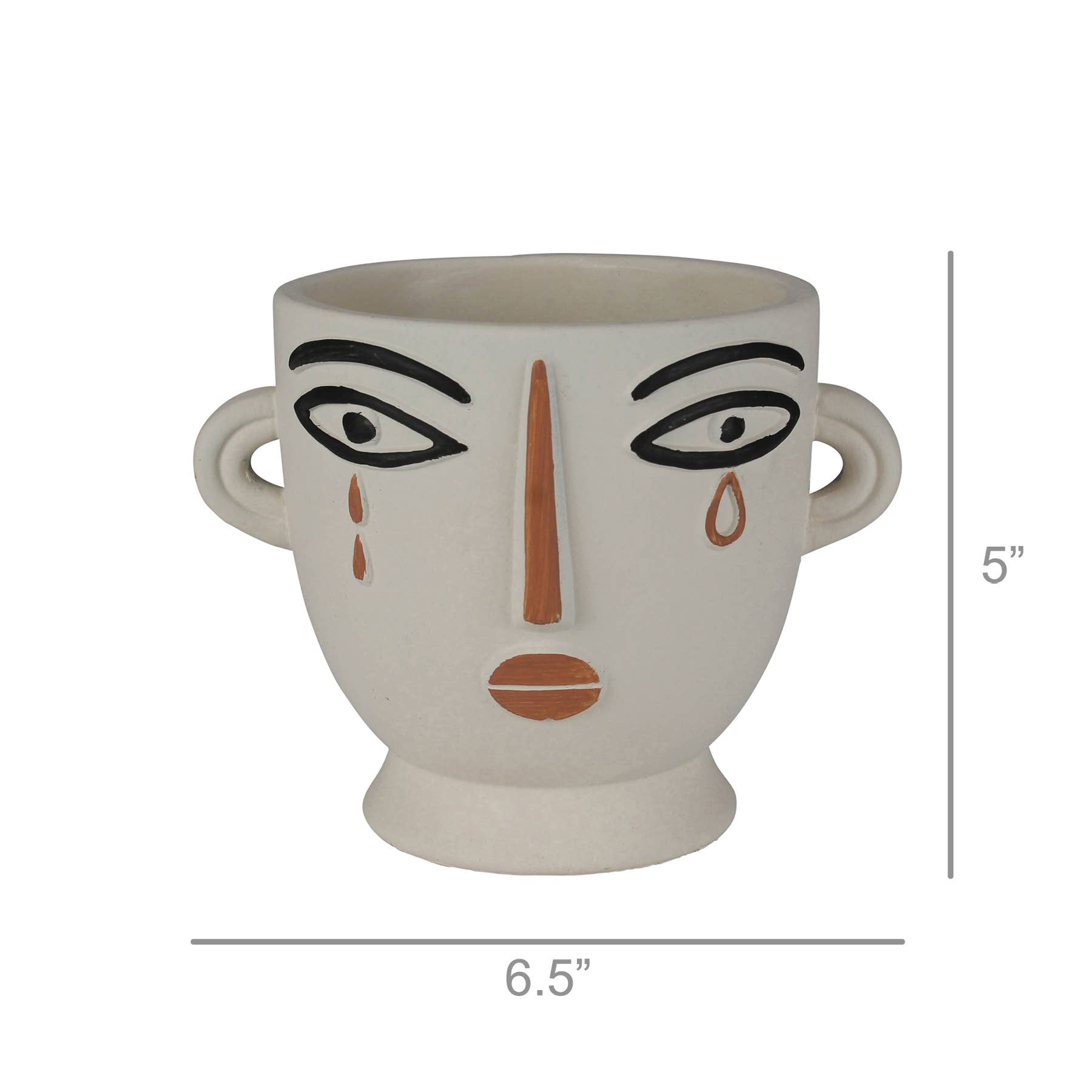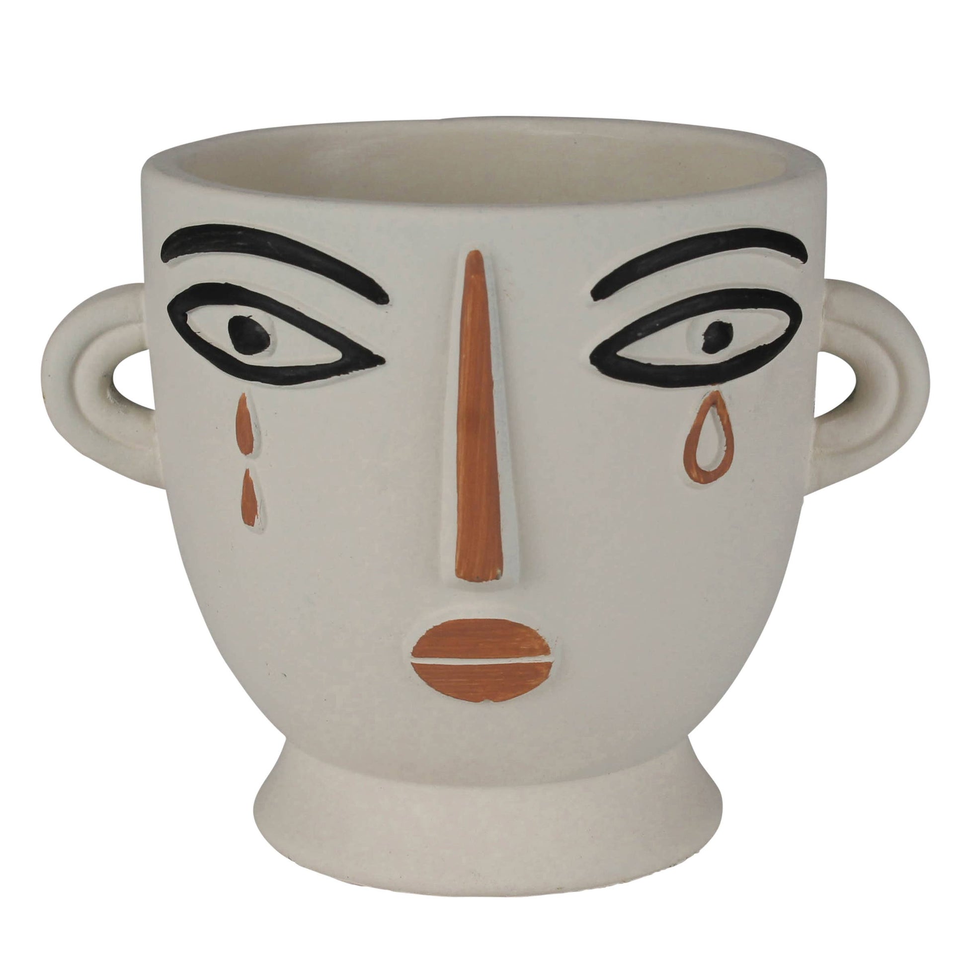 Happy sad tears, this acquiescent cement cachepot evokes strong emotions and waits to be topped with a floral crown and sized for a 4” drop-in pot.